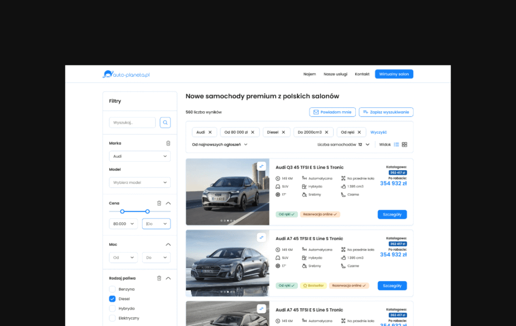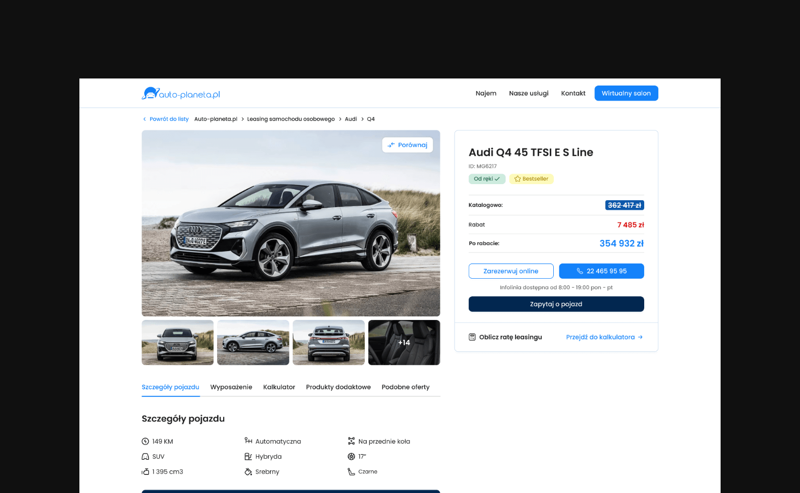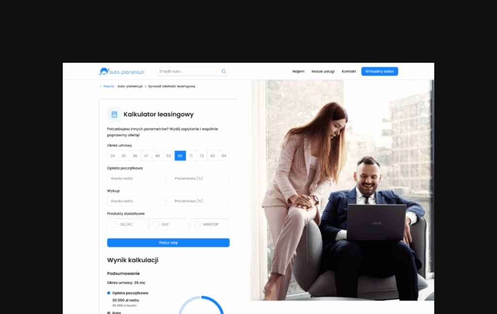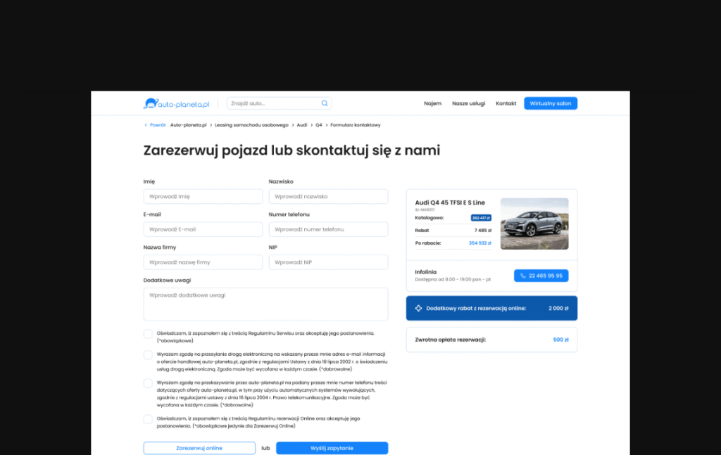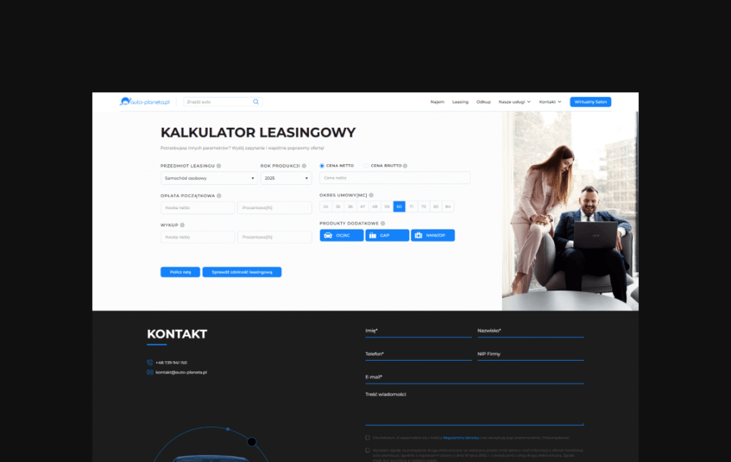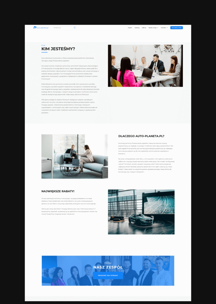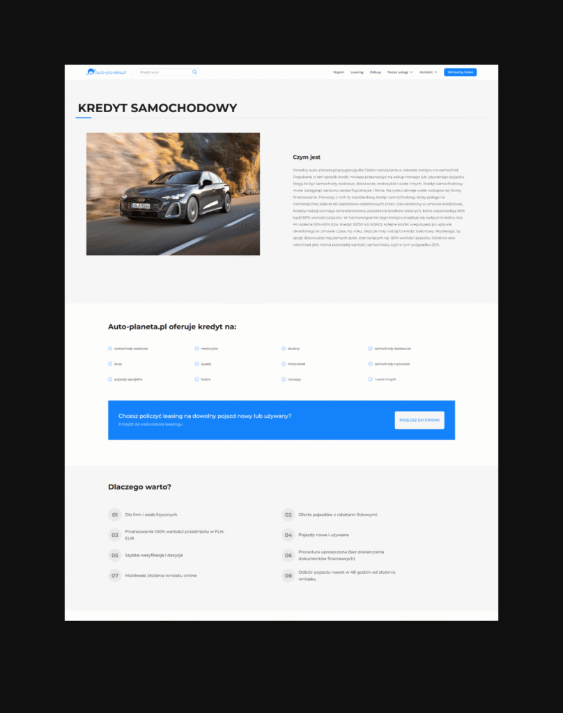 Utrzymaliśmy nowoczesny i modernistyczny wygląd preferowany przez Klienta, aby zachować spójność z pozostałymi częściami serwisu.