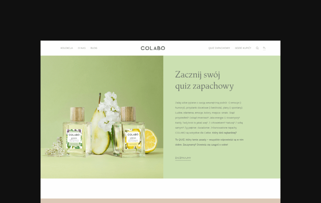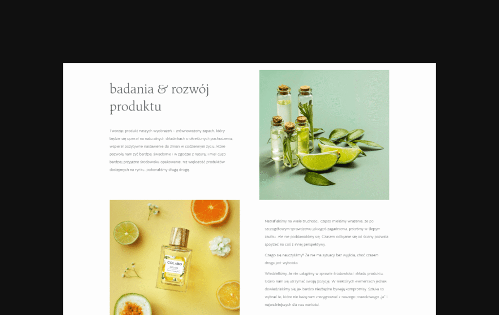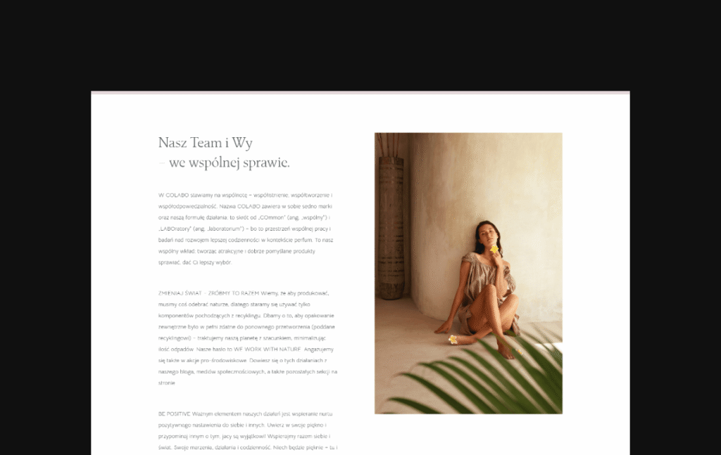 Zaproponowane przez nas rozwiązanie jest innowacyjne, różniące się delikatnie stylistyką od części poświęconych pozostałym markom, jednocześnie nie odbiegające od ogólnej koncepcji witryny.