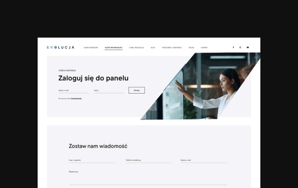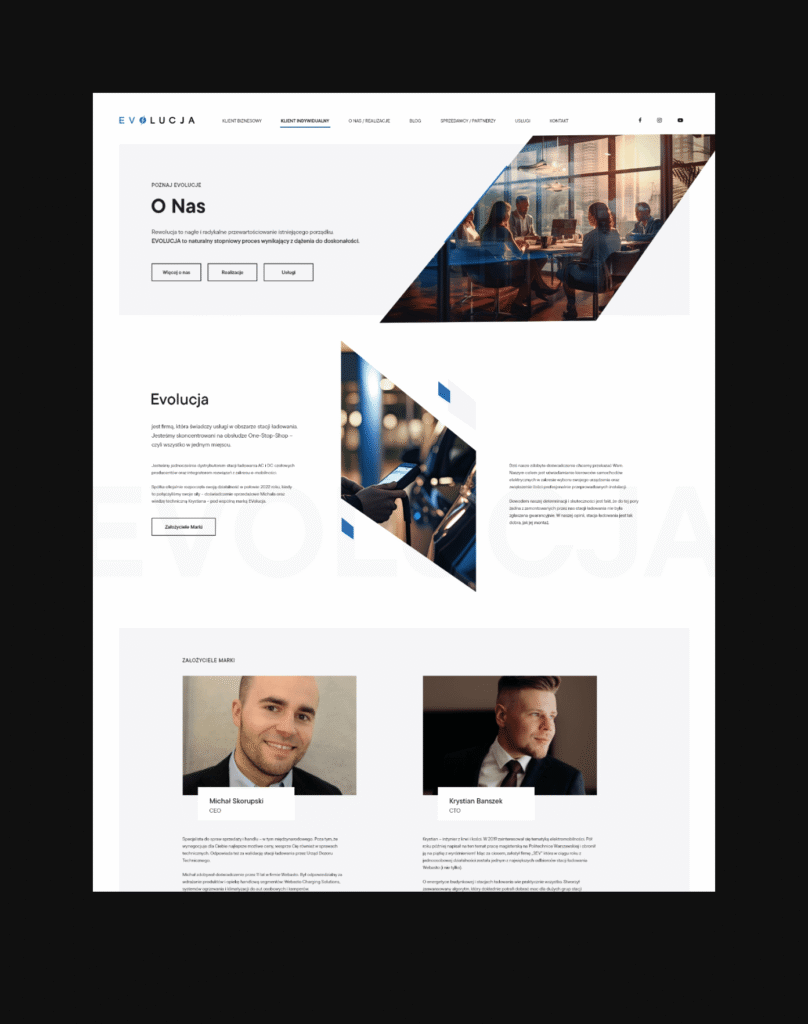 Utrzymaliśmy nowoczesny i modernistyczny wygląd preferowany przez Klienta, aby zachować spójność z pozostałymi częściami serwisu.