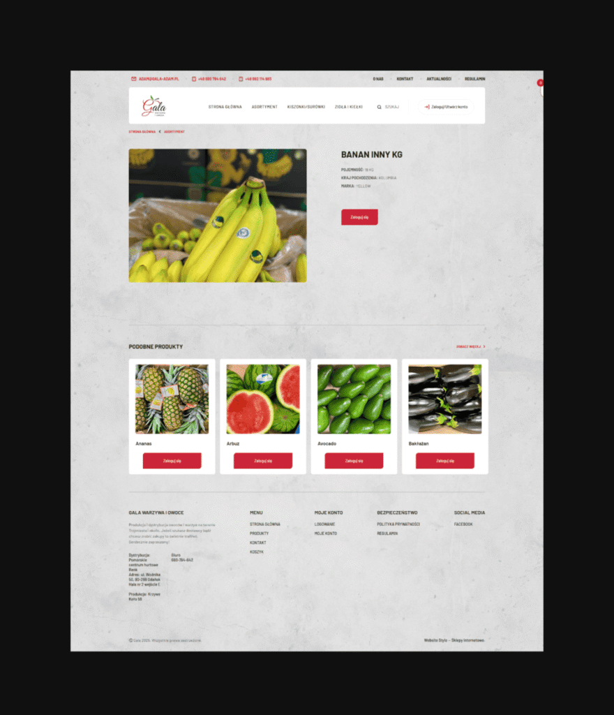 Celem było stworzenie strony, która w prosty i czytelny sposób prezentuje ofertę hurtową i detaliczną. Kluczowe było maksymalne uproszczenie nawigacji i procesu zakupowego, bez zbędnych efektów graficznych czy komplikowania UX.