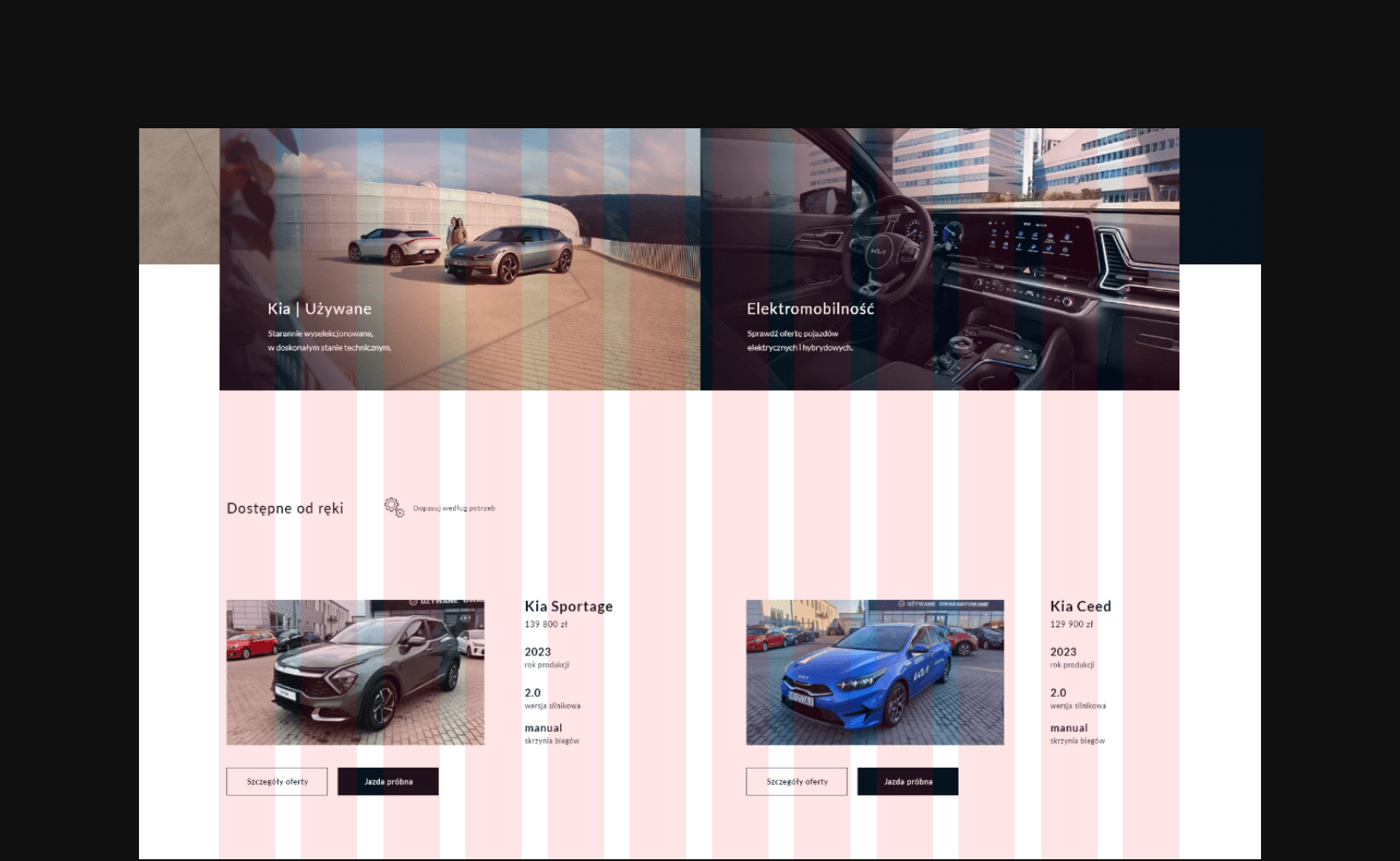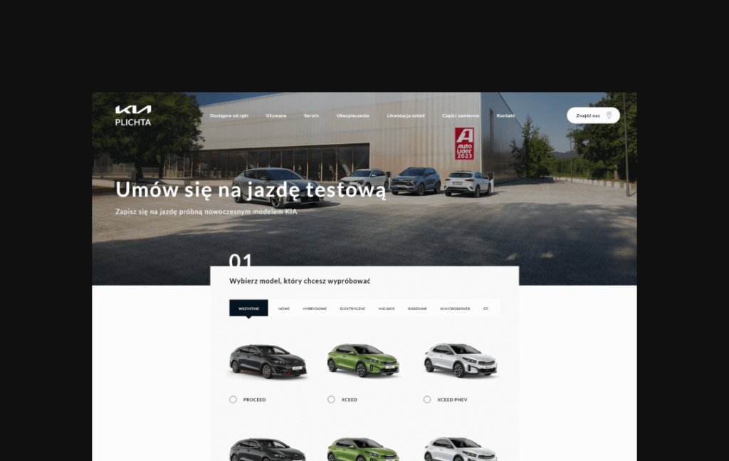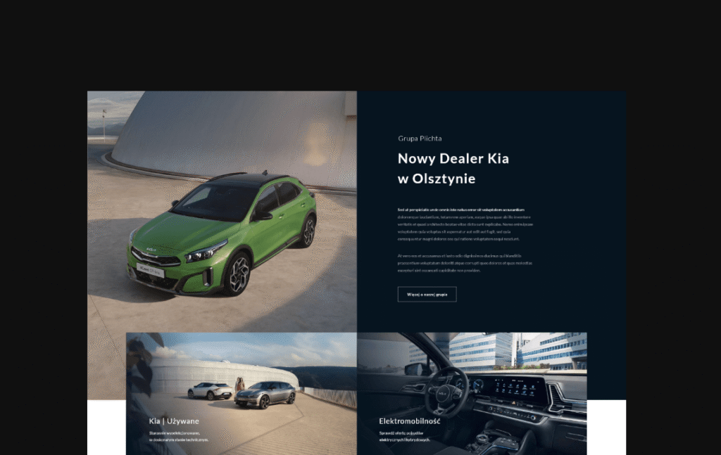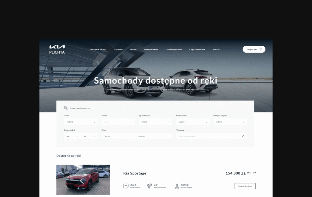 W Website Style tworzenie stron odbywa się etapowo, toteż każdy kolejny task jest poprzedzony odpowiednią burzą mózgów. Początkowy zakres prac obejmował tylko zaprojektowanie i wdrożenie witryny dla marki KIA, jednak z biegiem czasu, zostaliśmy poproszeni o dopełnienie całego serwisu.