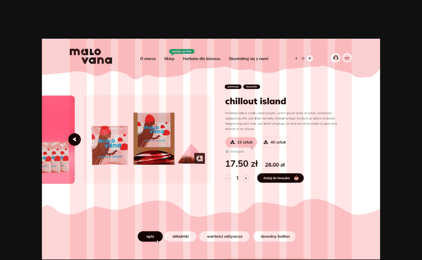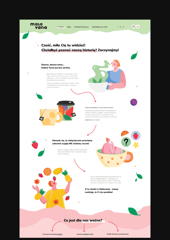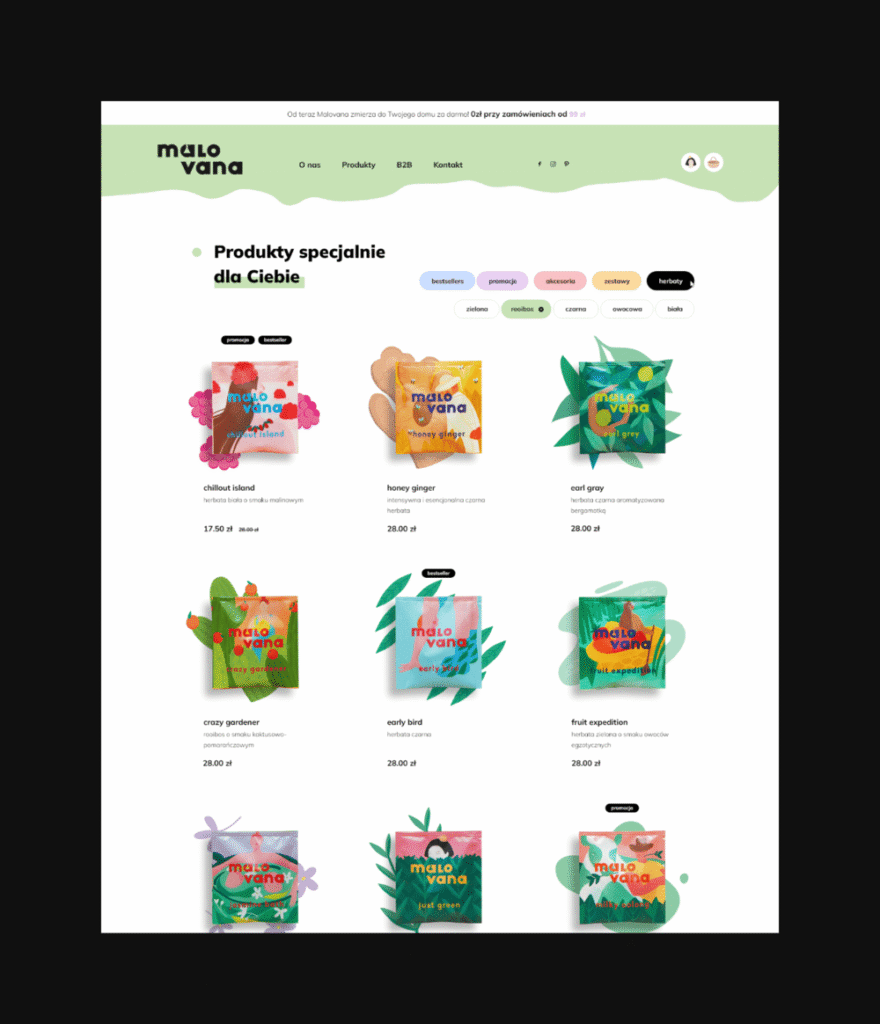 Malovana to polska marka, która kreuje własną tradycję picia herbaty – skupioną na dbaniu o siebie, codziennych rytuałach i odkrywaniu nowych smaków. Naszym zadaniem było stworzenie sklepu internetowego i strony wizerunkowej, które oddadzą charakter marki i podkreślą jej unikalne podejście do herbaty.