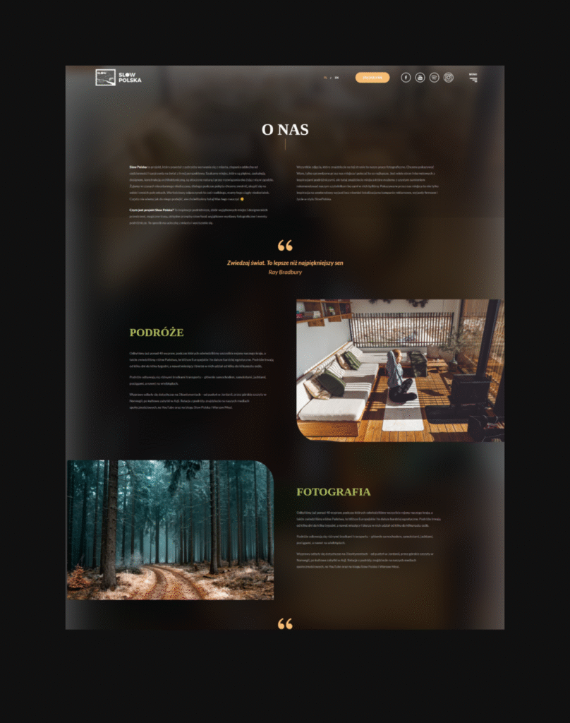 Strona główna to wizytówka projektu – od razu przyciąga pięknymi fotografiami i czytelnym układem treści. Wprowadza użytkownika w klimat slow-life, zachęca do odkrywania miejsc, wydarzeń i inspiracji.