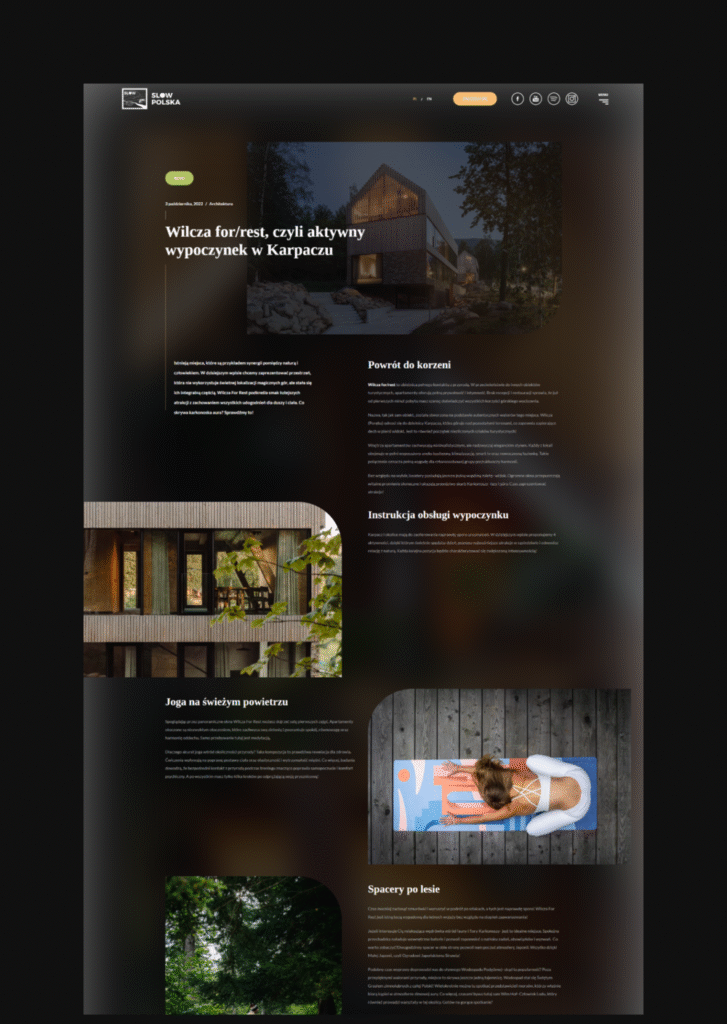 Wyzwaniem było stworzenie platformy, która w nowoczesny, przejrzysty i jednocześnie estetyczny sposób połączy funkcję bazy turystycznej, przewodnika po slow-life oraz inspirującego magazynu online. Klient oczekiwał witryny, która odda klimat natury i spokoju, a zarazem będzie szybka, intuicyjna i przyjazna w obsłudze.