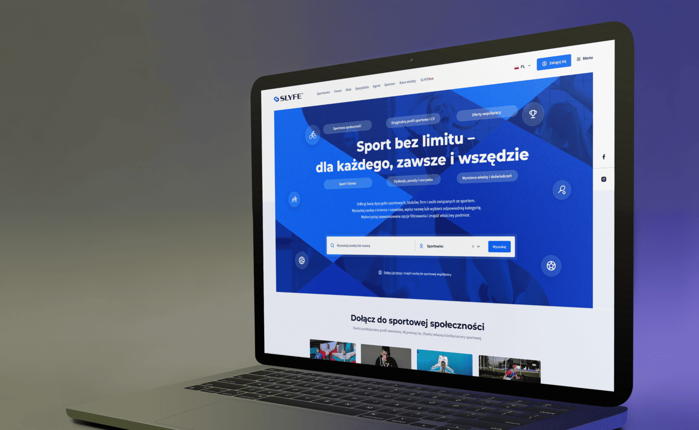 Portal Slyfe zrzesza sportowców, trenerów, menedżerów i sponsorów, umożliwiając im szybkie i proste nawiązywanie kontaktów. Naszym zadaniem było połączenie dużej ilości treści, tabel i porównań z prostym, nowoczesnym designem. Efekt? Intuicyjna platforma, która w przejrzysty sposób wspiera rozwój kariery sportowej i zawodowych relacji.